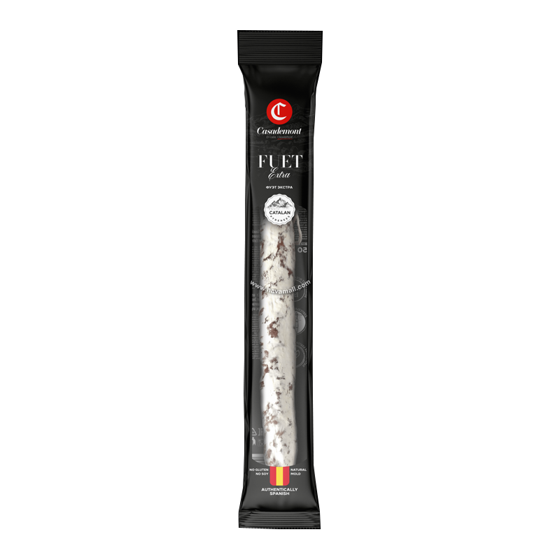 | Casademont is a leading figure in the production of deli meats, among which 'fuet' is the "star product", present in over 50 countries. The stuffing process is made in natural big trip to obtain this thicker chorizo, in which we can slice it very thin and uniform. Ingredients: Lean pork, chili powder, spices... |