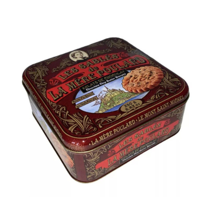 La Mere Poulard là thương hiệu mang đậm dấu ấn ẩm thực lâu đời ra đời từ năm 1888 tại vùng Mont St.Michel nước Pháp, được biết đến với những sản phẩm bánh ngọt vô cùng nổi tiếng. Những chiếc bánh quy La Mere Poulard vẫn được giữ nguyên hình dáng nguyên thủy đến tận bây giờ với dáng bánh tròn, màu bánh nâu, mang nhiều hương vị khác nhau và đặc biệt được tạo ra bởi công thức 100% thuần Pháp. Chúng luôn được làm ra từ các nguyên liệu tự nhiên của địa phương như trứng gà thả rông, bơ từ bò không tiêm hormone, không chất bảo quản, không phẩm màu nhân tạo , và không có GMO.